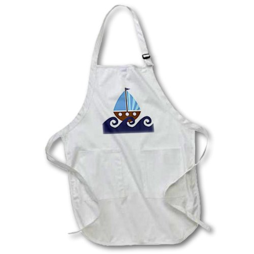 3dRose apr_15413_4 Little Boy Cute Blue and Brown Sailboat-Full Length Apron with Pockets, 22 by 30-Inch, Black