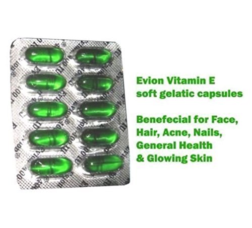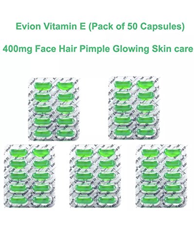 50 Evion Vitamin E Capsules For Face,Hair,Acne,Nails,General Health Glowing Skin 400mg