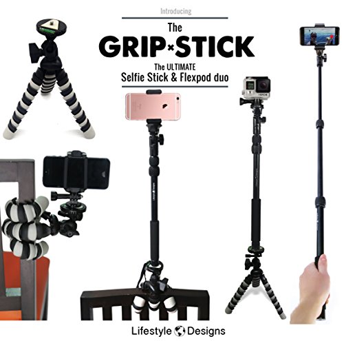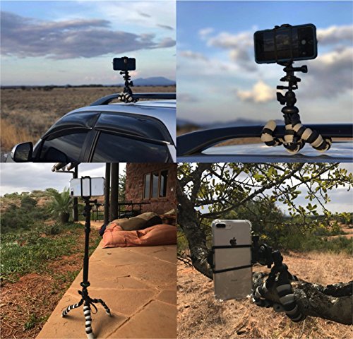 BEST FLEXIBLE GRIP TRIPOD: 12-INCH – Endless Creativity Awaits. Triples as a 3-in-1 tabletop tripod, mini handheld action stick, and pole grip mount. Perfect for any desk or tabletop, uneven surfaces, or wrapped around the back of a chair, railing, branch, or pole! The bendable arms made with premium rubber grips and sturdy aluminum-alloy core allows you to securely mount your device on virtually anything, worry-free. Even comes with a bonus phone mount with safety strap for extra protection.