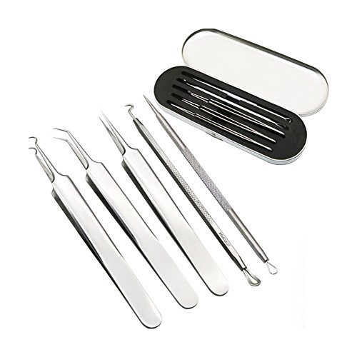 Blackhead Remover Kit CYSKY Professional Blackhead Pimple Extractor Tool for Blemish Zit Acne and Comedone Removal Tool (5PCS, Silver)