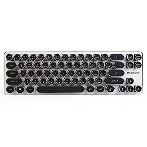 -. Binding : Personal Computers -. Brand : Qisan -. Color : Black -. Feature : 68-key mechanical keyboard with Kailh blue switches - The Kailh blue switches with nice tactile bump and the clicky sound give the keyboard a more than satisfactory feel when its comes to typing and gaming. It was engineered for MOBA games, such as League of Legend and DOTA 2 and FPS games, such as Counter Strike-Global Offensive. / Function noninterference in all keys - Messages can be delivered precisely and smooth by pressing the keys. / 3 DIP switches at backside - Switch 1: functions between Caps Lock and left Ctrl swapping; Switch 2: functions between Win and FN Ctrl swapping; Switch 3: Win lock. / Good build quality - The keyboard body is made of a sturdy and robust plastic with a matte white aluminum alloy surface under the keys in floating design. It feels very solid and has a lovely weight to it / Vintage round typewriter keycaps with chrome plating. Unique Round keycaps vintage style delivers an awesome feeling, produced with ABS material. The text of the keycaps is non-transparent and it can not support backlit keyboards to shine through the text. -. Label : Qisan -. Manufacturer : Qisan -. Model : 6937524551258FBA -. MPN : 6937524551258FBA -. PackageQuantity : 1 -. PartNumber : 6937524551258FBA -. ProductGroup : PC Accessory -. ProductTypeName : KEYBOARDS -. Publisher : Qisan -. Studio : Qisan -. Title : Mechanical Gaming Keyboard with Kailh Blue Switches White Backlight Silver Plate and Black Steampunk Retro Typewriter Style keycaps 68 Keys Mini Keyboard by Qisan