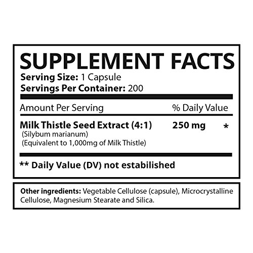 ✅ HIGH POTENCY FOR ULTIMATE LIVER SUPPORT: Our milk thistle seed extract (sylibum marianum pills) has 4X concentration of milk thistle extract. This is equivalent to 1000 MG of milk thistle per capsule.