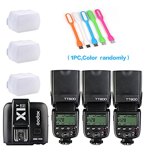 3xGodox TT600 High Speed Sync 2.4G Wireless Camera Flash Speedlite +Godox X1T-N Remote Trigger Transmitter for Nikon+3xDiffuser+ HuiHuang USB LED free gift