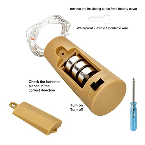 - Battery Powered Wine Bottle Cork String Lights -- Each cork string lights is powered by 3 PCS LR44 batteries (Included). Battery Compartment is with ON/OFF Switch. Easy to turn on and off switch.