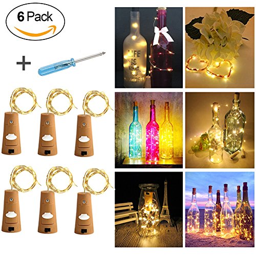 6Pack Wine Bottle Lights with Cork, Buycitky Led Cork Lights for Wine Bottles Battery Powered Starry Fairy Bottle String Light for Bedroom, DIY, Party, Christmas Decor Colorful (Warm White)