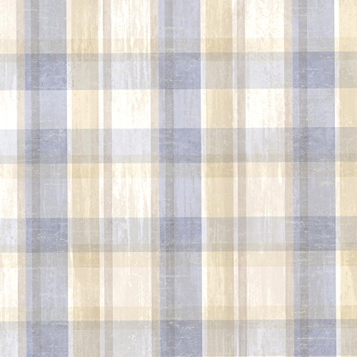-. Title : Brewster CTR215312 Laney Blue Sunday Plaid Wallpaper,