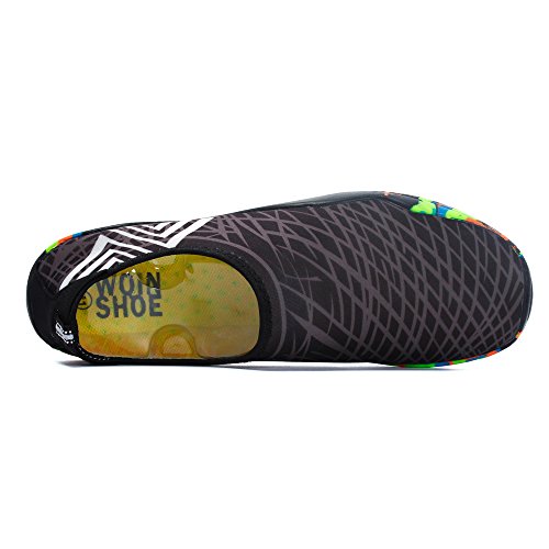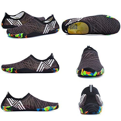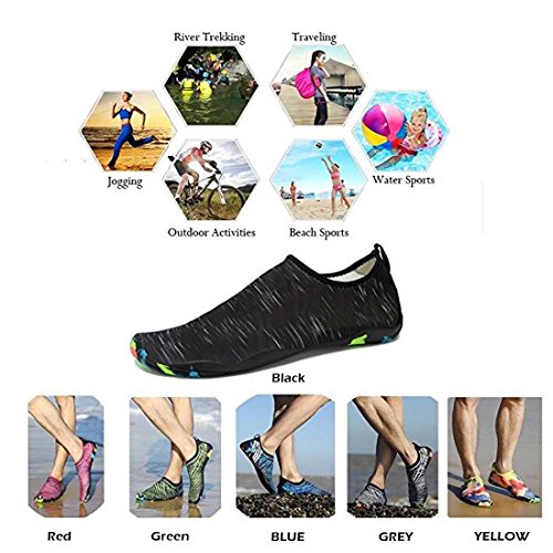 QUICK DRY --Top-of-the-line neoprene material is stretchy, breathable and retains shape for low maintenance wear. VARIOUS SIZE AVAILABLE -- Some are designing multiple versions to fit different feet. FLEXIBLE LIGHTWEIGHT--The barefoot shoes make your feet greatly fit and you can take it everywhere conveniently. Drainage Holes: quick-dry water shoes with 7 unique soles design on each bottom to ensure proper water easily drain out,which creates a cooler and healthier shoe environment. FOOT SAFETY: The rubber soles, with a really comfortable and thick foam arch-support insert inside of them, are flexible yet thick enough to protect your feet from stepping on rock and stone. SIZE CHART Compare the size chart with your feet length carefully before ordering. foot length 230 mm/9.06 in=5.5 B(M)US Women/5 D (M)US Men=EU 36 foot length 235 mm/9.25 in=6 B(M)US Women/5.5 D (M)US Men=EU 37 foot length 240 mm/9.45 in=6.5 B(M)US Women/6 D (M)US Men=EU 38 foot length 245 mm/9.65 in=7 B(M)US Women/6.5 D (M)US Men=EU 39 foot length 250 mm/9.84 in=7.5 B(M)US Women/7 D (M)US Men=EU 40 foot length 255 mm/10.04 in=8 B(M)US Women/7.5 D (M)US Men =EU 41 foot length 260 mm/10.24 in=8.5 B(M)US Women/8 D (M)US Men=EU 42 foot length 265 mm/10.43 in=9 B(M)US Women/8 D (M)US Men=EU 43 foot length 270 mm/10.63 in=9.5 B(M)US Women/8.5 D (M)US Men=EU 44 foot length 275 mm/10.83 in=9.5 D (M)US Men=EU 45 0 |