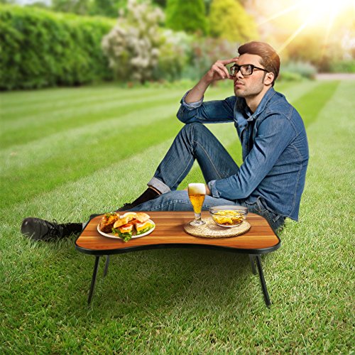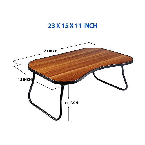 -. Feature : Multifunction Table: It can be used as laptop standing desk, breakfast tray, lap desk for sofa and bed, picnic table. / Sturdy Structure: 13.2mm diameter iron legs can take the pressure evently, keeping the balance of desktop. / Easy to Storage: Foldable legs save a lot space when you don't use the notebook stand. / Portable Size: Light weight gives you a chance to take it anywhere you need. / Product Dimension: 23"Wx15"Dx11"H, perfectly fit for a 17" or smaller laptop.