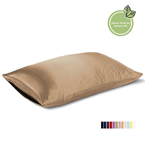 ElleSilk Cappuccino Silk Pillowcase, 22 MM Top Quality Mulberry Silk, Machine Wash, Standard Size, 1pc