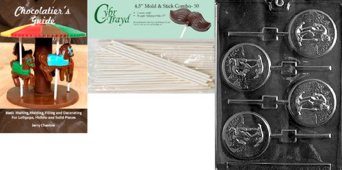 Cybrtrayd 'Skiing Lolly' Sports Chocolate Candy Mold with 50 4.5-Inch Lollipop Sticks and Chocolatier's Guide