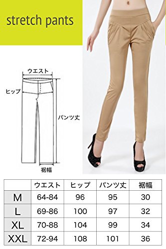 -. Feature : 美脚効果抜群のストレッチパンツ。無地でシンプルなデザインなので、どんな服とも合わせやすく、オールシーズン着回しできます。光沢のある生地なので通勤・通学はもちろん、フォーマルな場面でも活躍しそう♪ / 腰回りに入ったタックが足回りをすっきり見せ、脚長な印象に。テパードが美シルエットに今年っぽさをプラスしてくれます。 / スーパーストレッチ素材で1日履いていても疲れしらず。ウエストもゴムなので、楽ちん快適に過ごせます。 / 【カラー】ブラック、ベージュ / 【サイズ】 Mサイズ:丈 約95cm 、ヒップ 約96cm、ウエスト 64~840cm  Lサイズ:丈 約97cm 、ヒップ 約100cm、ウエスト 69~86cm XLサイズ:丈 約99cm 、ヒップ 約104cm、ウエスト 70~88cm XXLサイズ:丈 約101cm 、ヒップ 約108cm、ウエスト 72~94cm