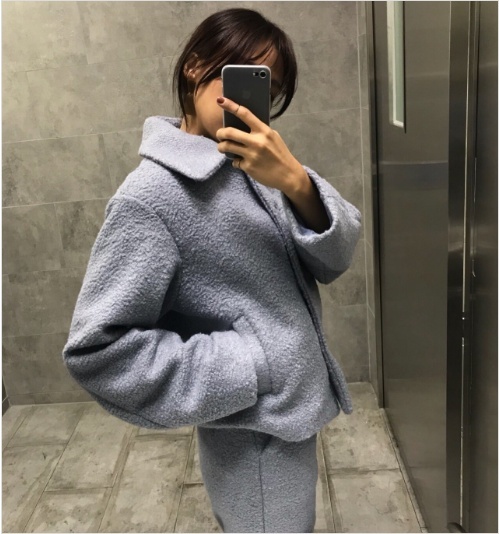 Women`s Simple Cropped Jacket Beige Light Blue