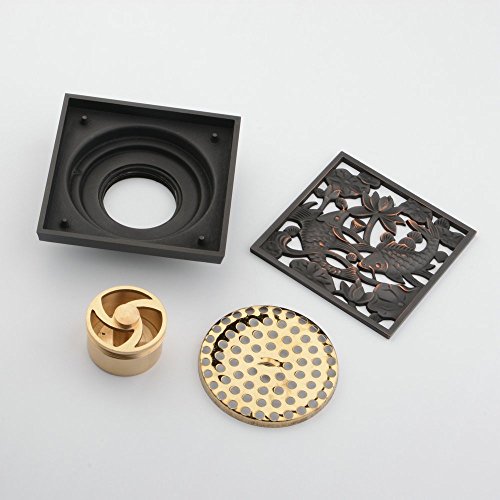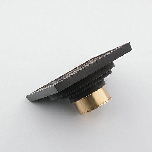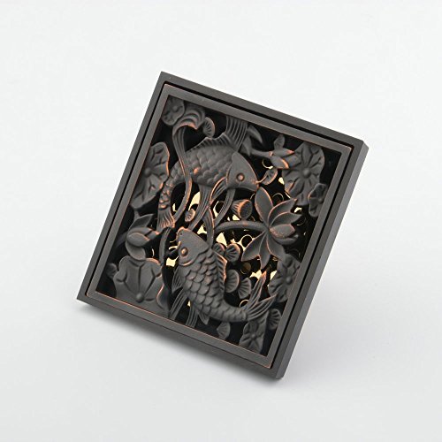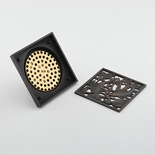 Hiendure® Solid Brass Square Floor Drain Art Carved Shower Ground Drainer with Removable Strainer,oil Rubbed Bronze Finish
