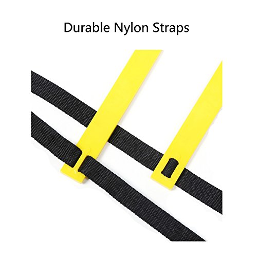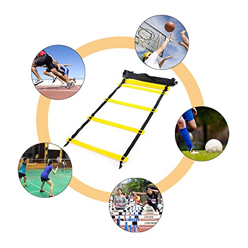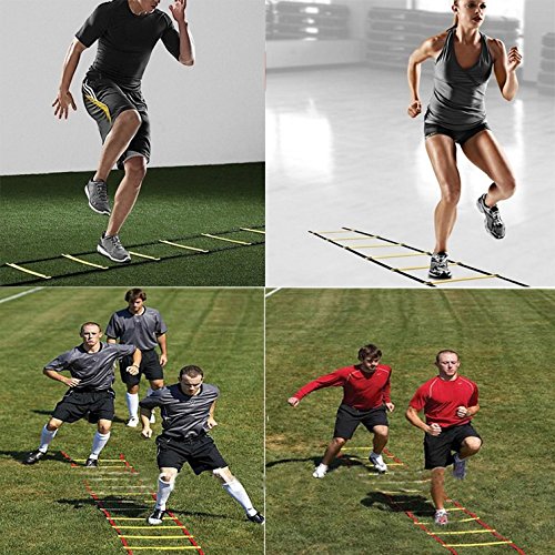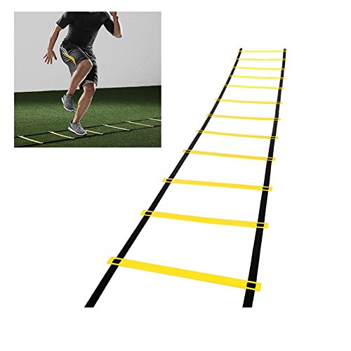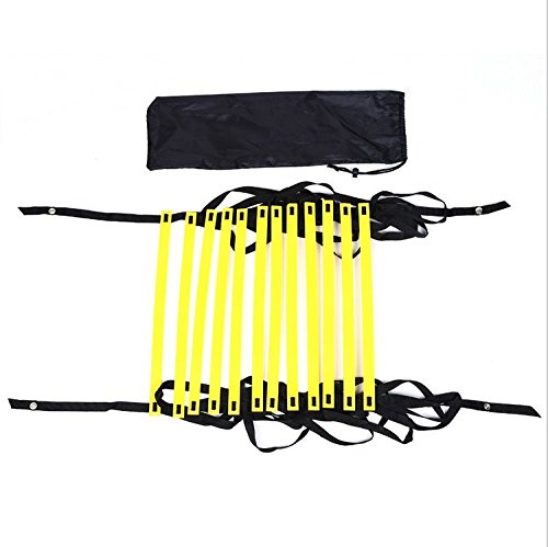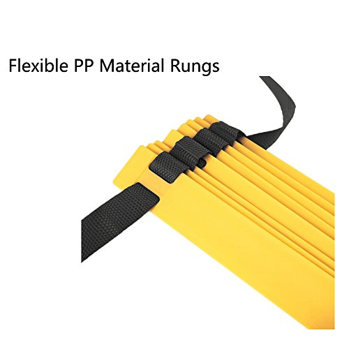 -. Feature : MareriaL: PP material+Nylon Straps, can use last for years / Ladders Quantity: 12, Length : 6M / Perfect for enhancing acceleration, flexibility, lateral quickness, rhythm and body balance/control / Ideal for athletic training, warm-ups, and cool-downs, perfect for soccer, football, and basketball drills, tennis, badminton, rugby, and more. / Comes with a waterproof strong bag which makes it easy to carry