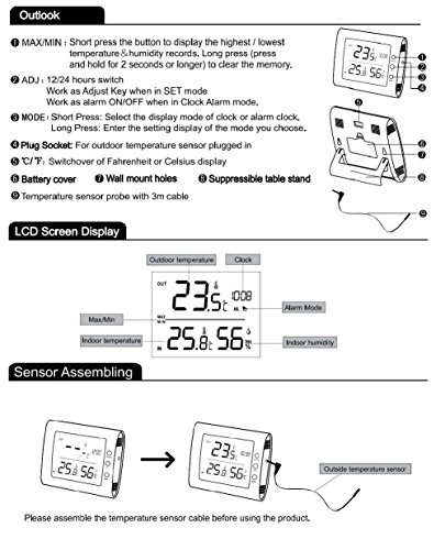 Minimum Maximum Thermometer Indoor Outdoor Thermometer and Hygromete with Clock