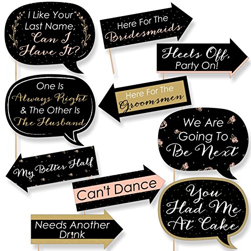 10-Piece Funny Best Day Ever Photo Booth Props Kit INCLUDES 10 Wedding or Bridal Shower arrow and speech bubble photo booth props, 10 wooden dowel sticks and adhesives for assembly. EASY ASSEMBLY: Simply attach the printed DIY photo booth props to the wooden dowels with included adhesive and reinforcing stickers.
