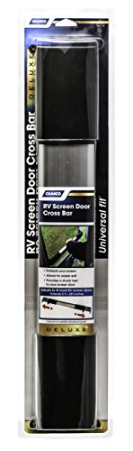 Camco RV Screen Door Cross Bar allows for easier exit and protection of the RV screen door. It adds a sturdy feel to the door and saves repair to screens. This bar adjusts from 21-5/8" - 28-5/8". It is easy to install and includes hardware.Feature