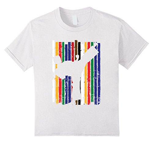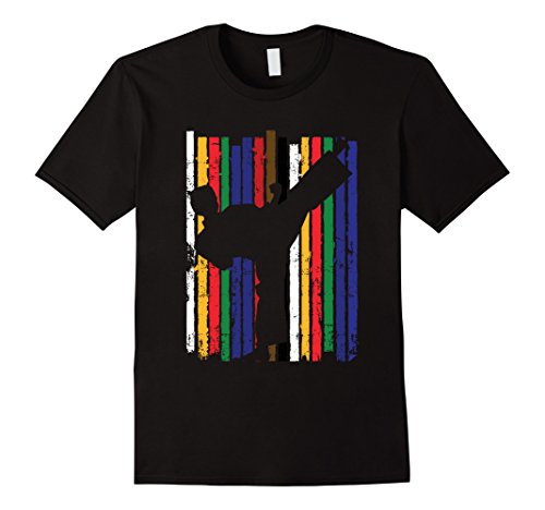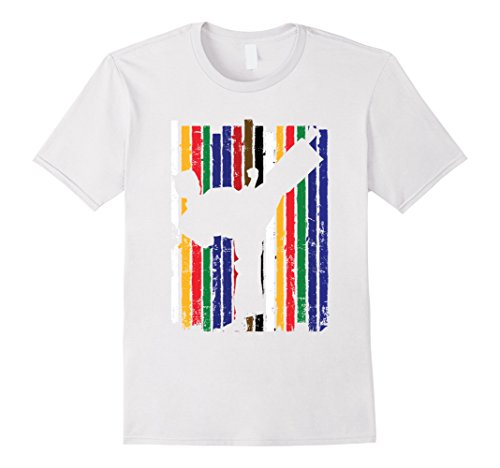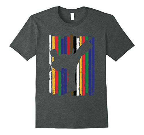 Karate Belt Colors Silhouette Kick T-Shirt features distressed belts, and a figure kicking. This Karate t-shirt, is perfect for boys, girls, and adults to wear anytime. NOTE: Please order one or two sizes up to ensure comfort