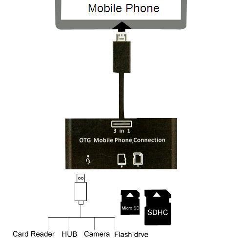 3 in 1 card reader for mobile phone with OTG function (for Samsung, HTC, Motorola, LG, etc.)