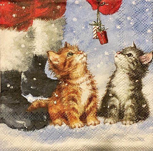 CTS 3-ply Cocktail Beverage Paper Napkins, Christmas Kittens, 20 ct