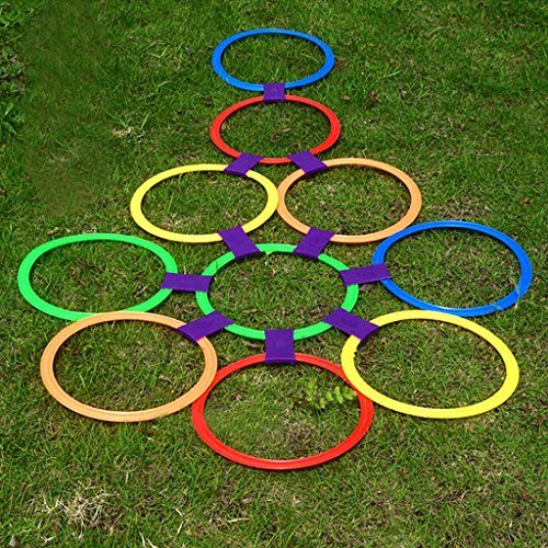 Description: - Brand new and high quality, non-slip surface is extremely durable for years of active use - Two of the greatest childhood games come together with the twister hopscotch - It is easy to learn, quick to set up and the movable rings let kids use their imagination to set whatever jumping grid they like in any pattern - Teach your children their colors and get them plenty of exercise with this entertaining, high-energy kids' game - Now you can play hopscotch year-round. This indoor twister hopscotch game provides a fun and active experience for two players at a time - Material: plastic - Ring Clip(approx): 8.5cm(3.34inch) - Ring Diameter(approx): 29.5cm(11.59inch) - Color: multi-color Package Includes: 1 Set Twister Hopscotch(10 Rings 10 Ring Clips)