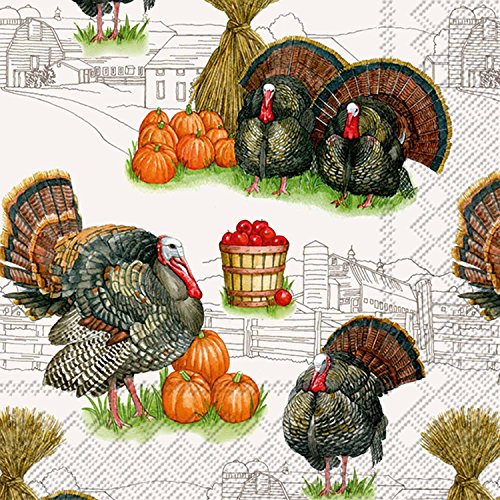 Ideal Home Range C757900-40 Paper Cocktail Napkins, Harvest Turkey