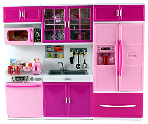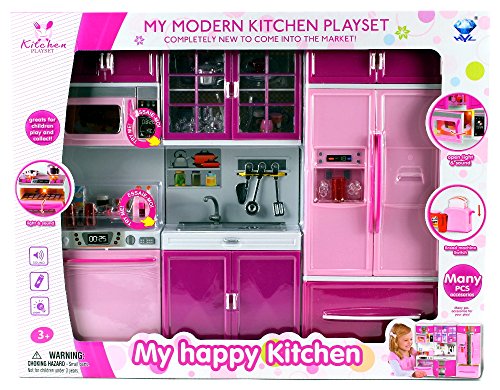 MY HAPPY KITCHEN DISHWASHER SINK REFRIGERATOR BATTERY OPERATED TOY DOLL KITCHEN PLAYSET W/ LIGHTS, SOUNDS, PERFECT FOR USE WITH 11-12" TALL DOLLS