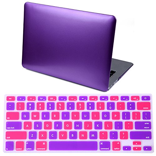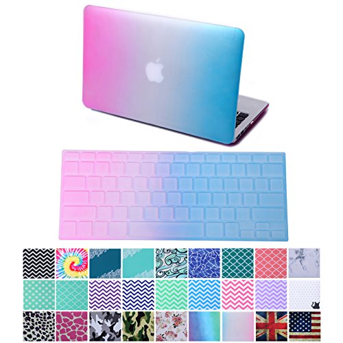 HDE Matte Hard Shell Clip Snap-on Case + Matching Keyboard Skin for MacBook Air 13" - Fits Model A1369 / A1466 (Rainbow)