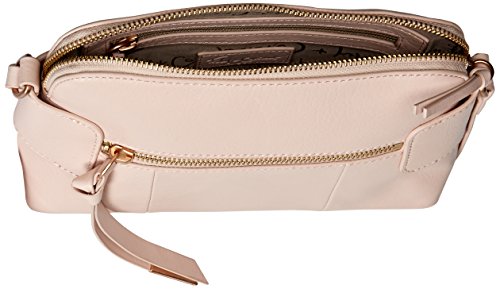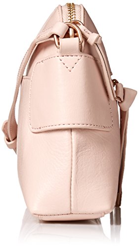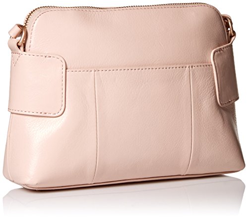 Leather cross-body bag featuring zipper pulls with metallic tipping and logo-print lining