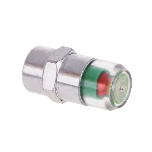 - Feature : Visually alerts you when the tire pressure is low to help avoid premature tire wear or blowouts from under-inflated tires / Material: Chromed Metal Round / Green shows that tire pressure is normal. / Yellow shows that the pressure is down about 5 pounds. / Red alerts you that the pressure is down by at least 10 pounds.