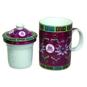 -. Title : Porcelain Tea Cup - Strainer - Traditional - Fuchsia