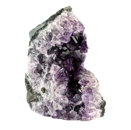Amethyst is considered the stone of Sobriety. For those starting their journey into the Mineral Kingdom of gemstones and crystals, Amethysts is one of the first stones many people find themselves instantly attracted to. With its ability to stimulate the third eye, crown, and etheric chakras, Amethyst is a stone of choice for psychic openings and intuitive development with a particularly powerful effect in spiritual expansion of oneself. Due to its high vibrational energies, it immediately lifts surrounding "lower energies" up to match its own. This is especially helpful in improving the physical environment by placing Amethyst clusters or geodes in the vicinity. Amethyst is known to induce dreams in deep sleep while simultaneously protecting the dreamer in that state. This powerful stone can help one identify the root causes behind unhealthy behaviors, habits, and emotional patterns to galvanize the individual to move towards rectifying them. As such, Amethyst assists in banishing emotion-based decision making, allowing the individual to assimilate higher guidance and spiritual understanding into his or her actions. It is especially effective to help one overcome addictions including but not limited to drugs, alcohol, sex, gambling, and work. It uncovers one's self destructive patterns and encourages the individual to take responsibility for his or her own action. Amethyst promotes the body's assimilation of oxygen and removal of waste products. It helps to balance the nervous system and brain. A powerful ally to have by your side.Feature
