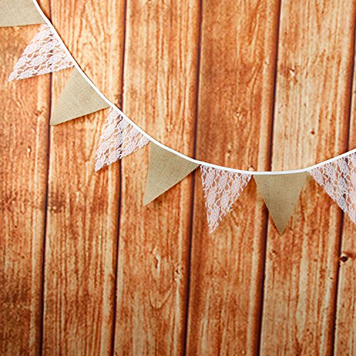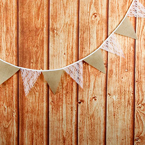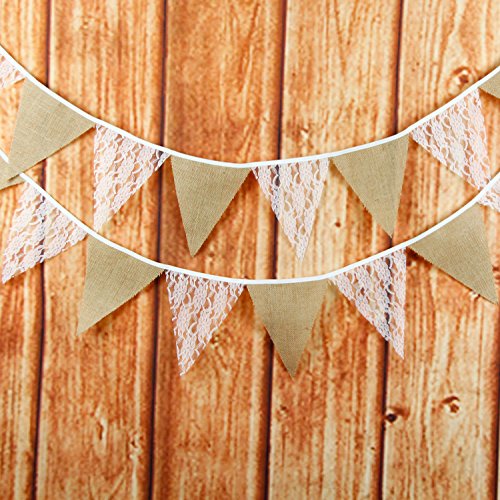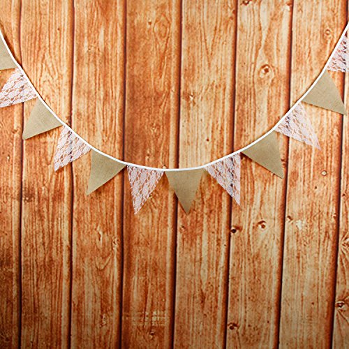 -. Title : INFEI Rose Flower White Lace & Burlap Fabric Flag Buntings Garlands Wedding Birthday Party Decoration