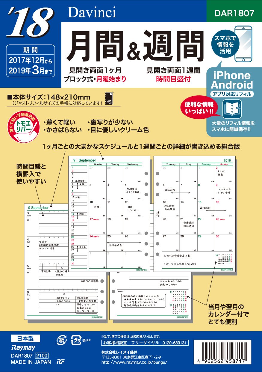Product name: Reimei Tsui Da Vinci notebook refill for beginning December 2018 Weekly A5 DAR 1807