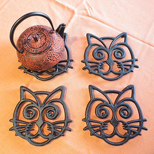 - DECORATIVE CONVERSATION PIECE - Compliments country, vintage, shabby chic or whimsical home decor. Not only can you use these cat trivets as protection for a countertop or furniture in the kitchen or dining room, but also they can serve as decorative items for a table or bookshelf. Mix with other cast iron cat theme trivets for an eye-catching grouping.