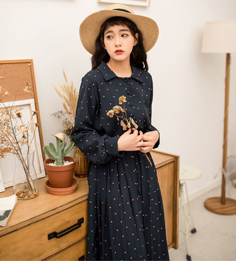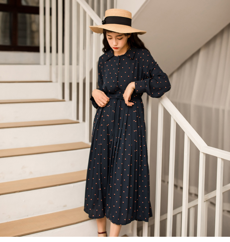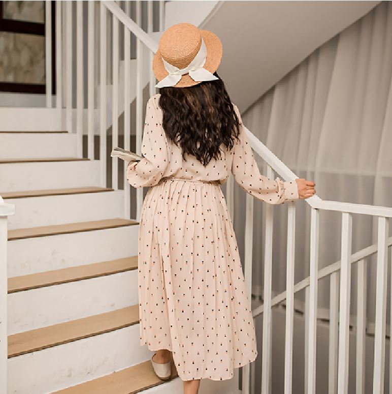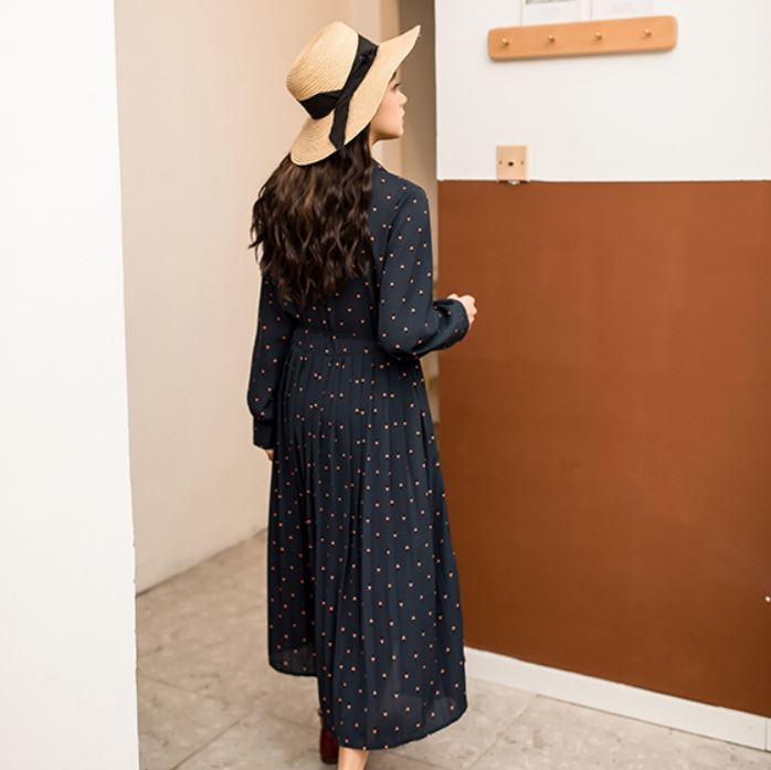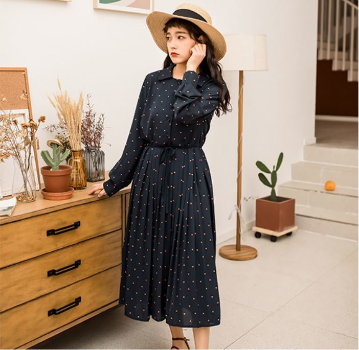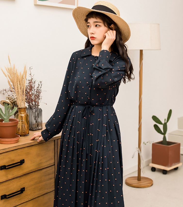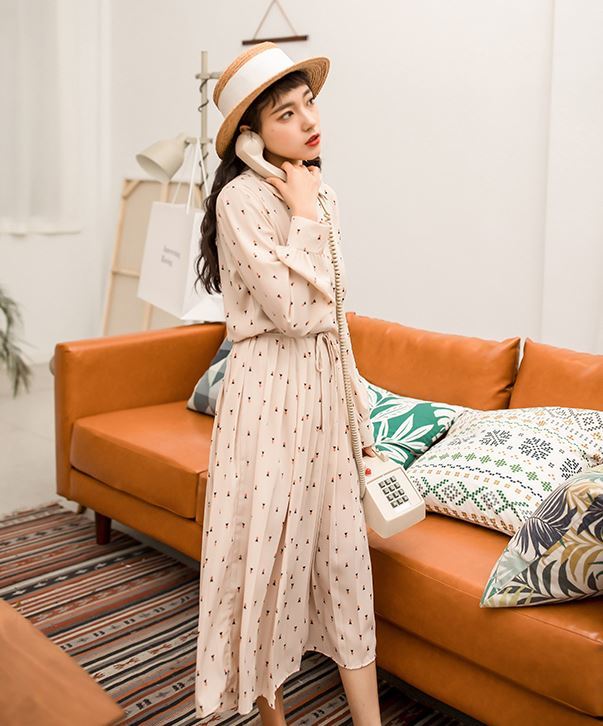 膝丈のプリーツスカートで清楚なお嬢様風の1枚です。