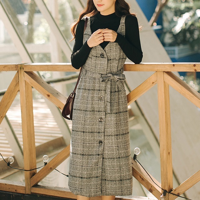 寒い時期には、ワンピースの上にニットを合わせるのもお勧めです☆
