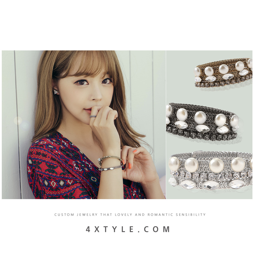 블링블링 큐빅과 퓨어한 진주로 화려하게 빛나는 브레이슬릿.