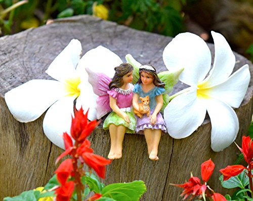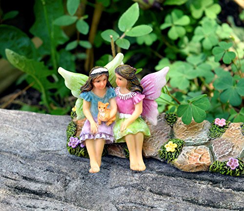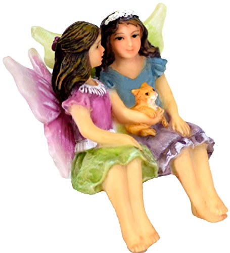 THE ADORABLY DESIGNED FAIRY GARDEN SISTERS ALICE & MAY BY TWIG AND FLOWER - Will Make all of your Gardens Hidden Fairies and Gnomes Feel Right at Home as they sit Relaxing and Having a Chat with their Super Sweet Little Kitten Oliver.