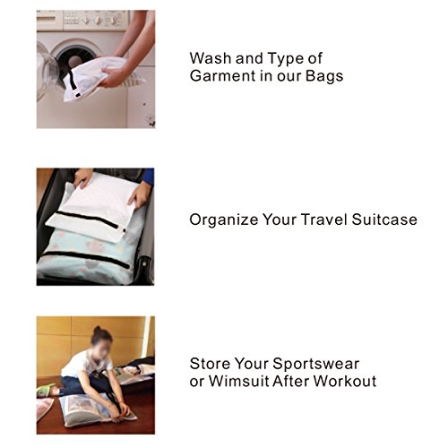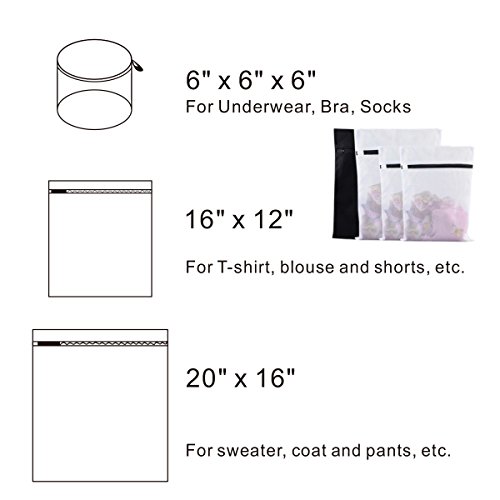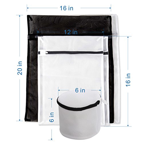 - Package included: Set of 5 wash bags-Dimension:1 Black Large Bag (20" x 16"), 1 White Bag (20" x 16"), 2 White Medium Bags (16" x 12"), 1 Bra Wash Bag (6" x 6" x 6"), Ideal for hosiery, blouses, sweaters, undergarments, socks, baby clothes, plush toys, or even gym gear