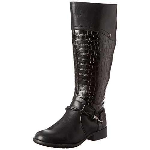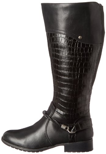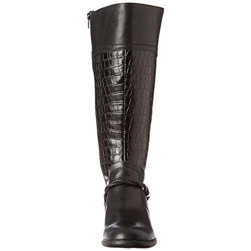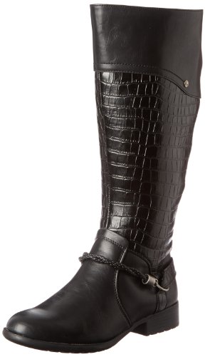 Product DescriptionThis tall riding boot features a crocodile print shaft and a harness detail for visual interest, and a side zipper and elastic gore for an easy, comfortable fit.0