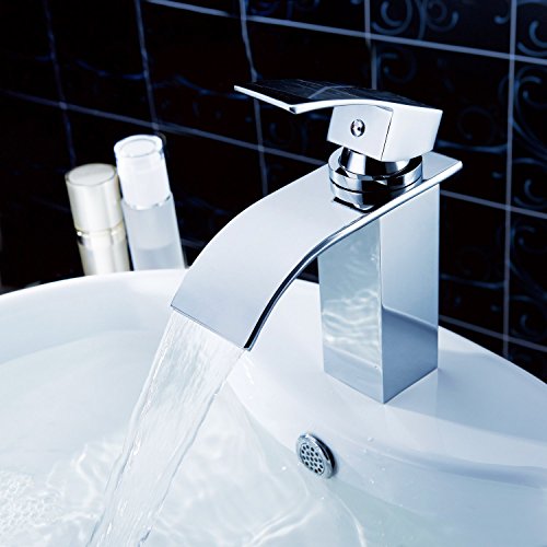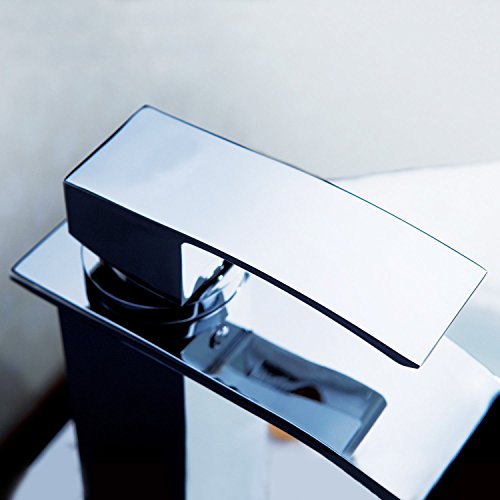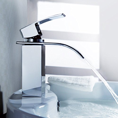 Ouku Deck Mount Single Handle Waterfall Center Set Lavatory Faucet with Curved Spout Chrome Unique Designer Vanity Cooper Plumbing Fixtures Roman Tub Faucets Widespread Vessel Sink Tall Curve Spout Bar Faucets Bathroom Bathtub Shower Lavatory Tap