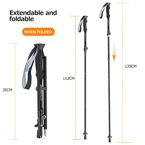 EXTENDABLE: The trekking poles after collapsed fit well for your backpack which makes it easy to carry around. With 3-section design, the sticks can be extended from 43.3''- to 53.1''