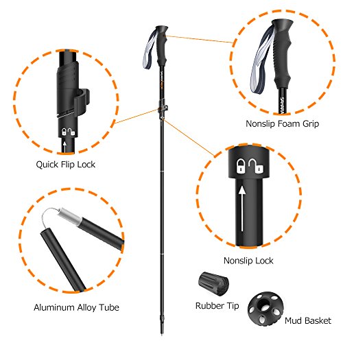EASY TO USE AND SPEED LOCKING SYSTEM: With the easy-to-follow instructions and after a couple times’ trying, you’ll be able to collapse and extend the hiking poles within a few seconds