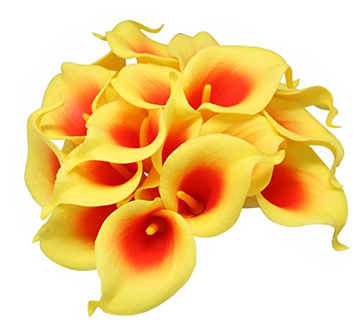 20 Heads Yellow Mini Calla Lily Bridal Wedding Bouquet Real Touch Flower Bouquets Love Heart
