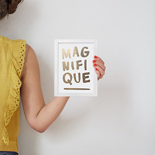 - This 5" x 7" foil-pressed art print is framed in a white wood frame, handcrafted in Italy from the finest milled wood. Pre-installed hanging hardwire is included.