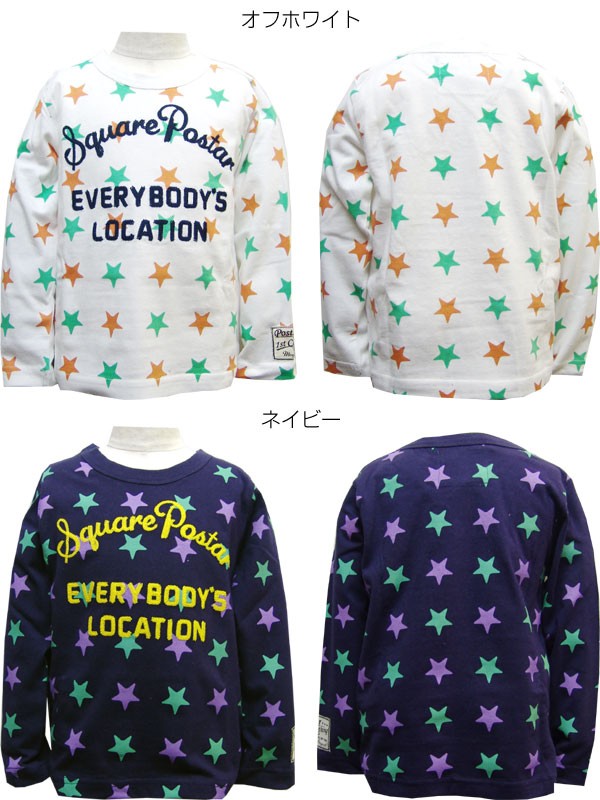 コメント:星柄のポップなロンT!チェーン刺繍がポイント!※90cmは左肩スナップボタン付きです。