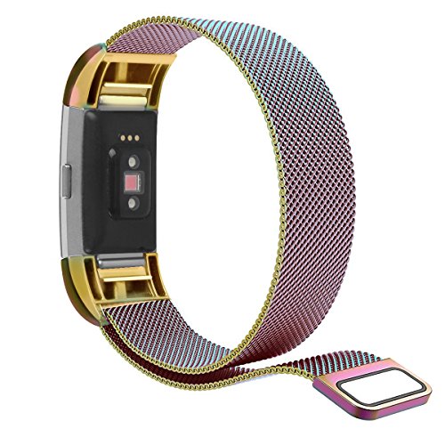 Fitbit Charge 2 Band Metal ,Oenbopo Milanese Loop Stainless Steel Adjustable Bracelet Strap Replacement Wristbands for Fitbit Charge 2 ,with Unique Magnet Lock No Buckle Needed