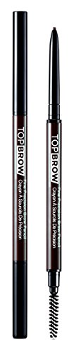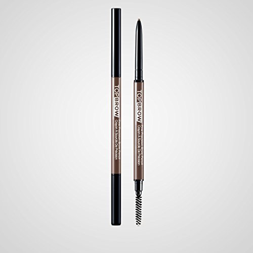 Dual-ended brow pencil with ultra-fine tip on one side and includes spoolie on the other