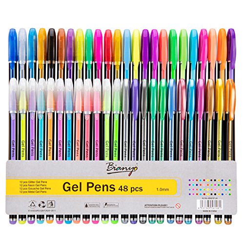 48 Unique Colors Gel Pen Set - Glitter,Neon,Metallic,Pastel Colors - Refill Art Markers for Adult Coloring,Writing-Drawing Pen for Kids, Gifts